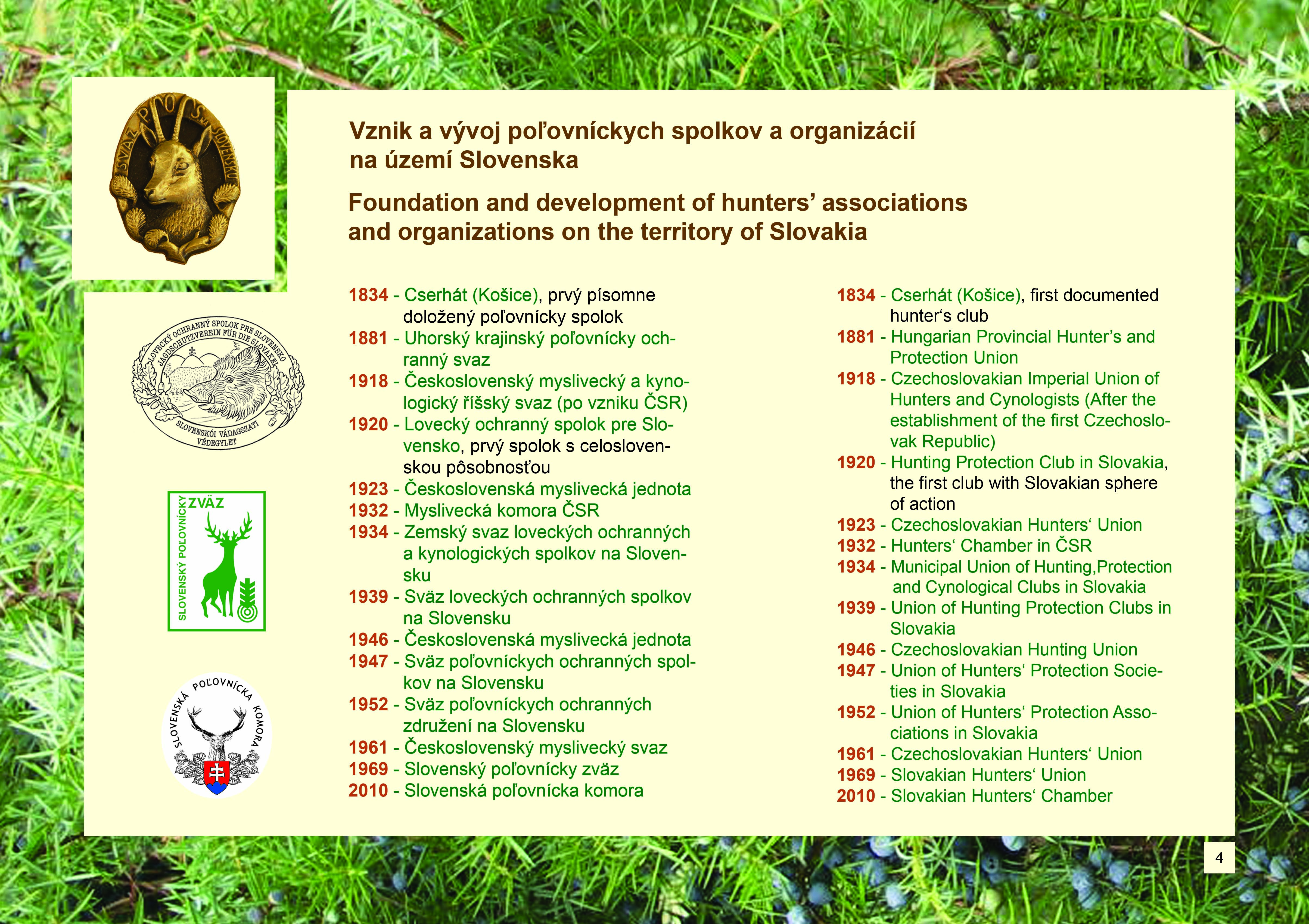 V živote jednotlivca, ako aj spoločenskej organizácie, bývajú dni všedné, ale aj dni na ktoré sa nezabúda. Dni ktoré sprevádzajú dobré, či zlé udalosti. Za uplynulých 90 rokov od vzniku organizovaného poľovníctva na Slovensku bolo takýchto dní veľa. Z dostupných zdrojov autor chronologicky podľa jednotlivých rokov zachytil tento proces vývoja poľovníckej organizácie na Slovensku.